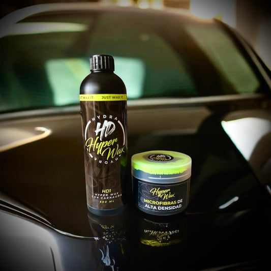Si el vehículo está muy sucio quita el exceso de suciedad con agua primero para ahorrar producto y esfuerzo. Luego aplica una capa de HYPERWAX para conseguir un máximo brillo y protección.